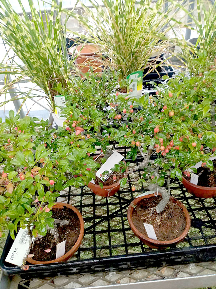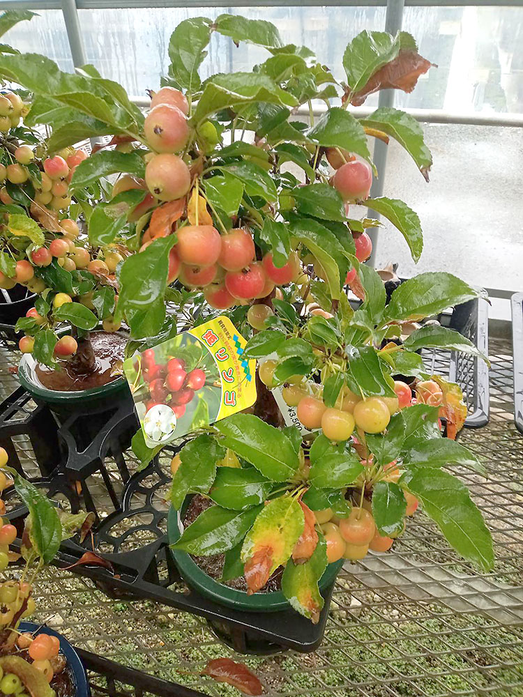 また、パイプハウス(ビニールハウス)では、今が見頃!赤い実が可愛らしい姫りんごやミヤマカイドウの鉢植えもおススメです。