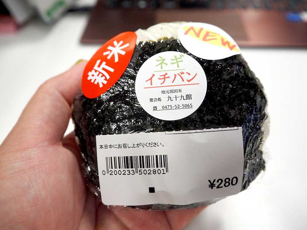道の駅 みのりの郷東金 東金マルシェのお総菜コーナーに九十九館さんが研究に研究を重ねて!やっと出来上がった、千葉県自慢の『ネギイチバン』が入った「おっきなおにぎり(ネギイチバン)」が並びました!
