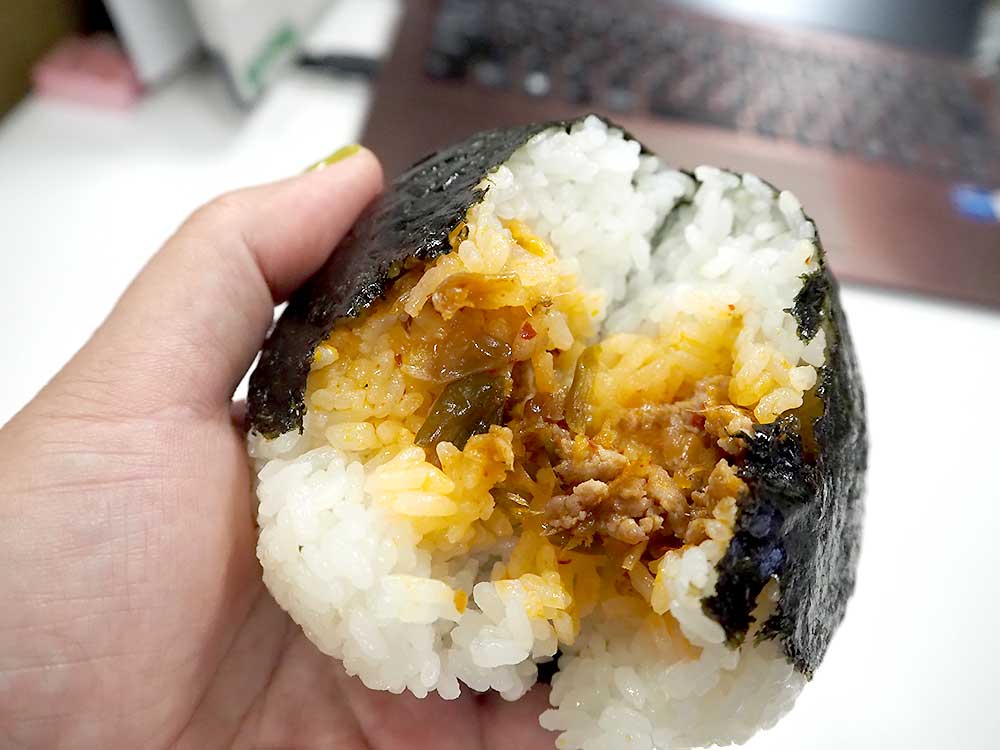 千葉県内のいくつかの道の駅で競って取り組んでいる?「ネギイチバンおにぎり」の東金バージョンは、『ネギイチバン』に豚のひき肉を加えて調味をし、さらに味わい深くなった具材が入っているのです!