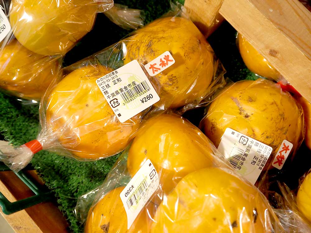 四角い形で種はほとんどなく、果汁が少なく堅めでコリコリとした食感。