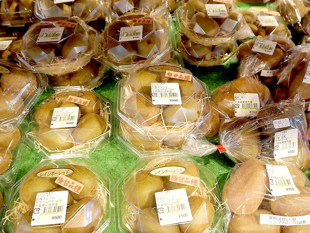 お問い合わせの多いキウイの品種「レインボーレッド」も並んでいますよ。