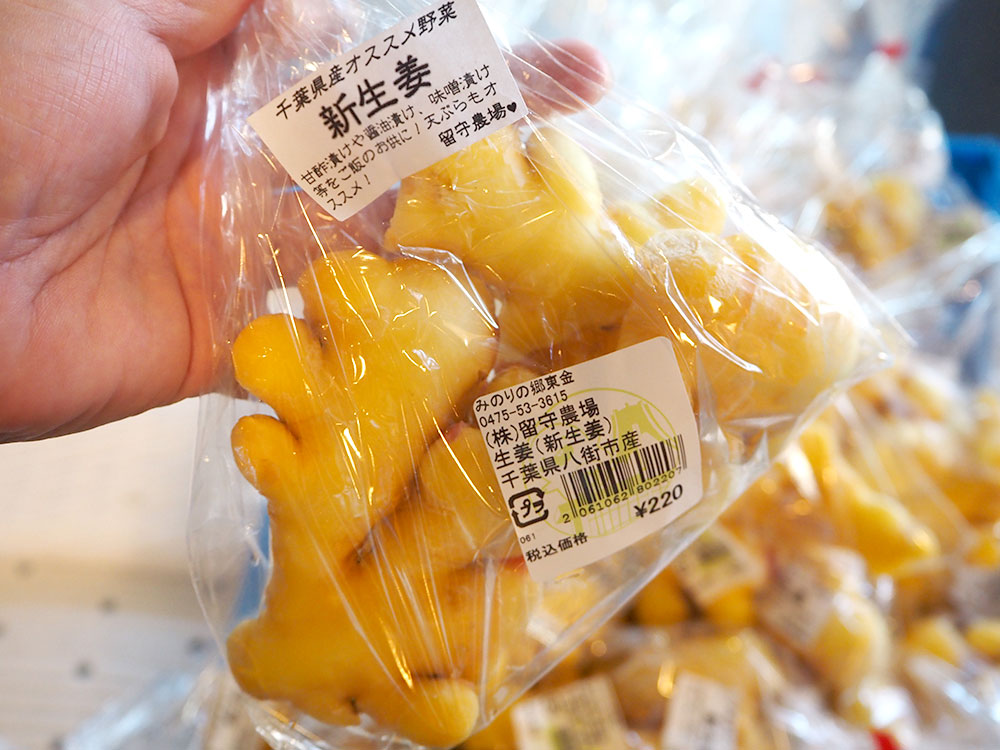 本日の農産物は、コンディションの良い新生姜がたくさん入荷しました!また、お漬物用に人気の高菜、春の足音菜花、ネギもたくさん入荷しています。