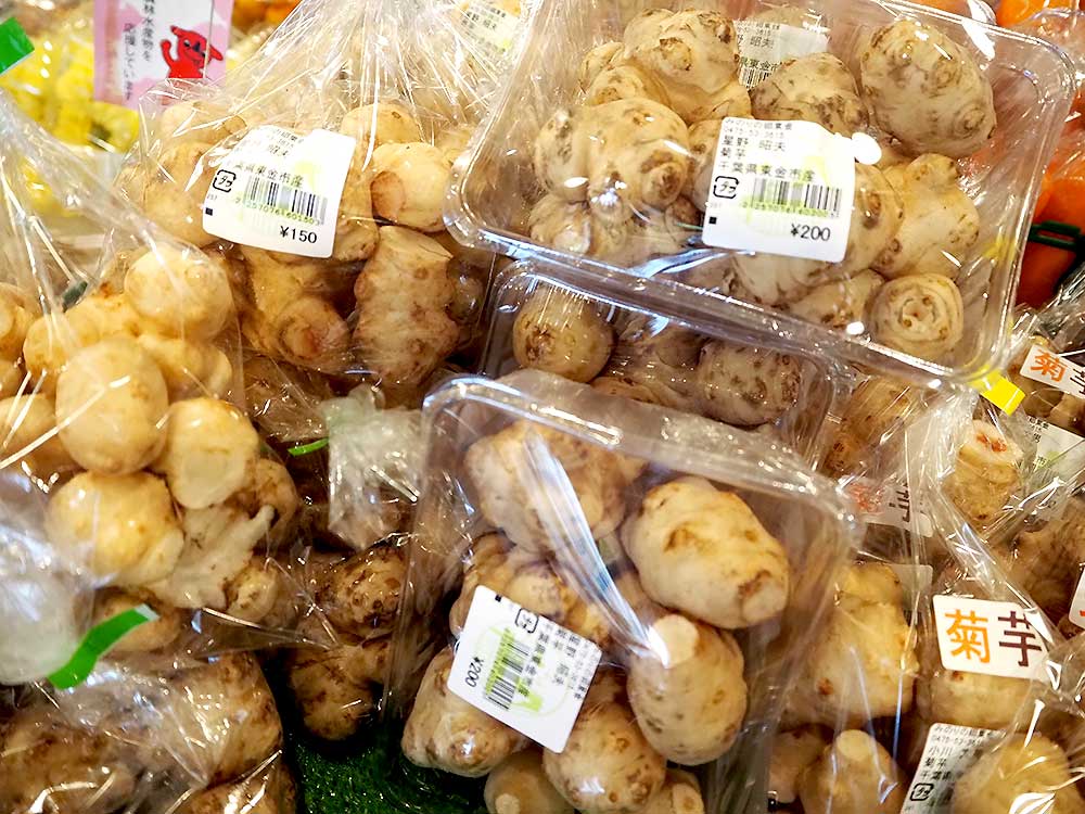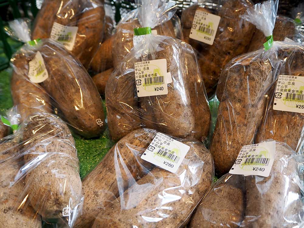 一番奥のところにはヤム芋が並びました。人気の菊芋もたくさんございます。
