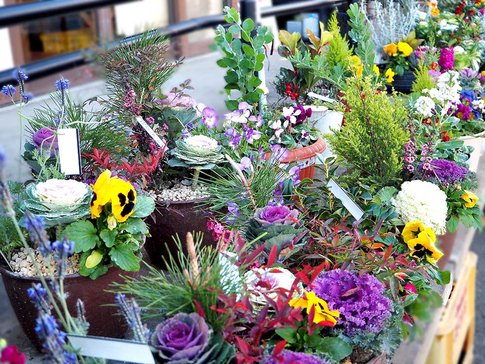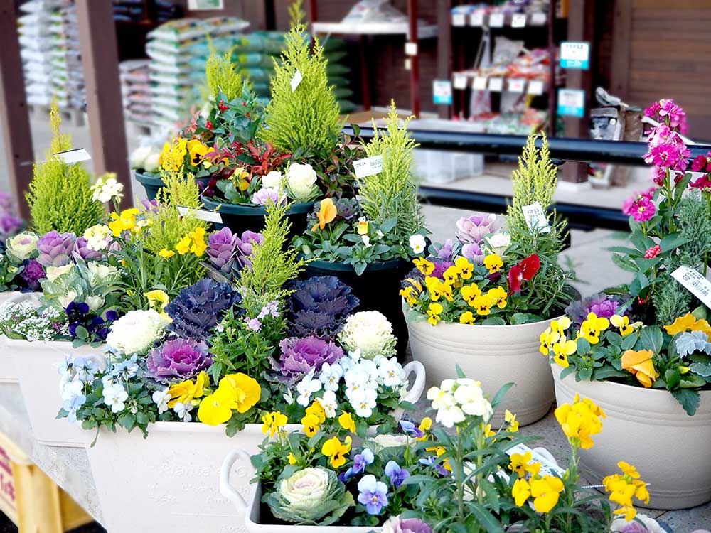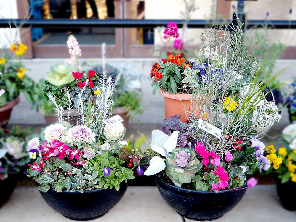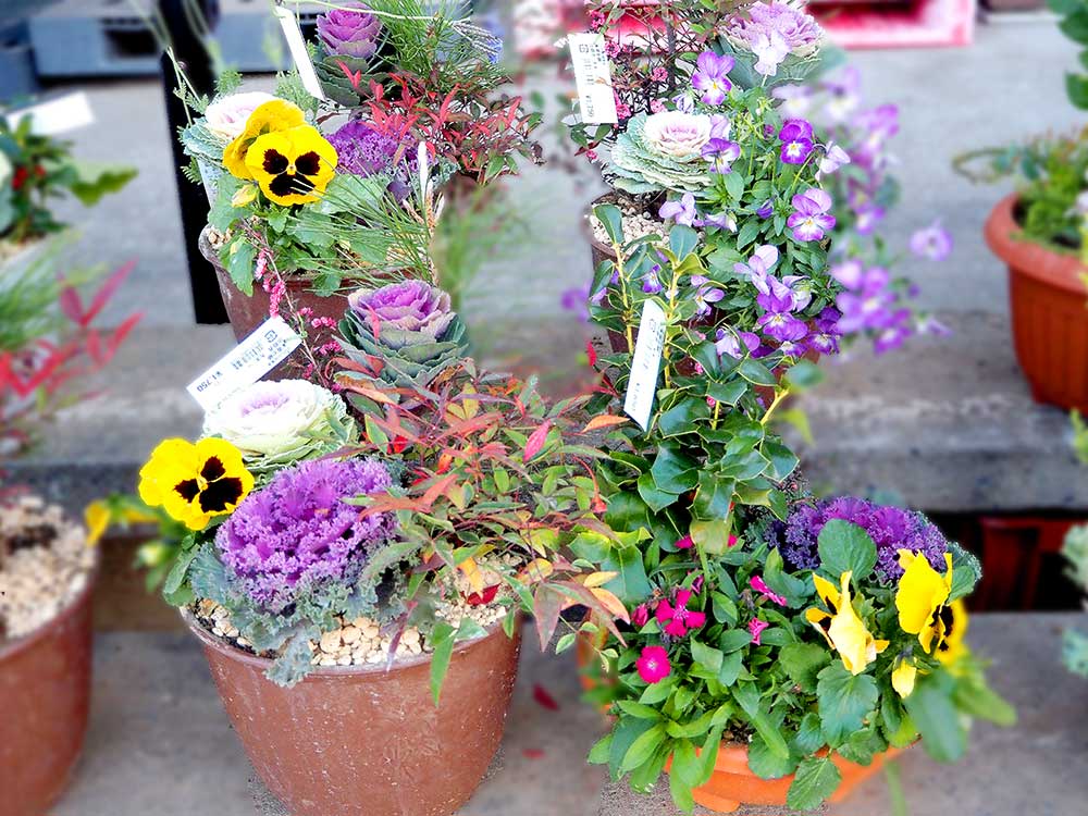 道の駅 みのりの郷 東金 緑花木市場のレジ横には、お正月用の寄せ植えが並んでいます。
