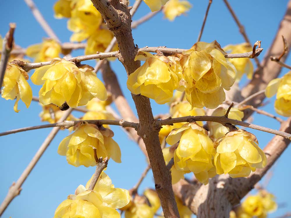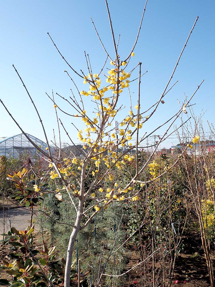 圃場では、この季節のプリンセス、蝋梅(ロウバイ)が咲き始めました。