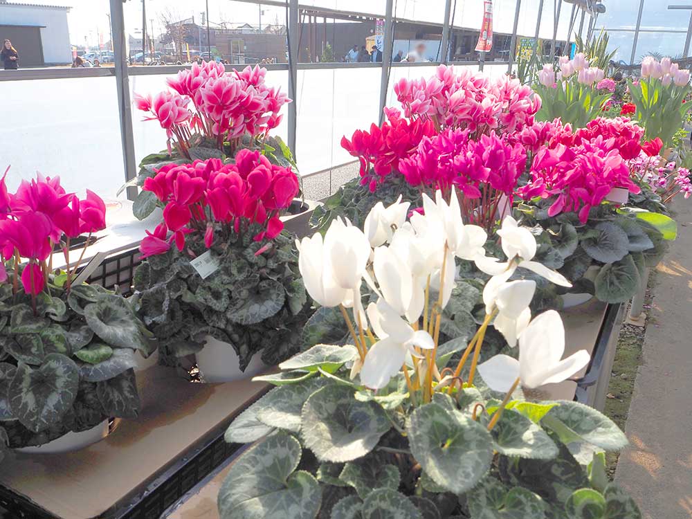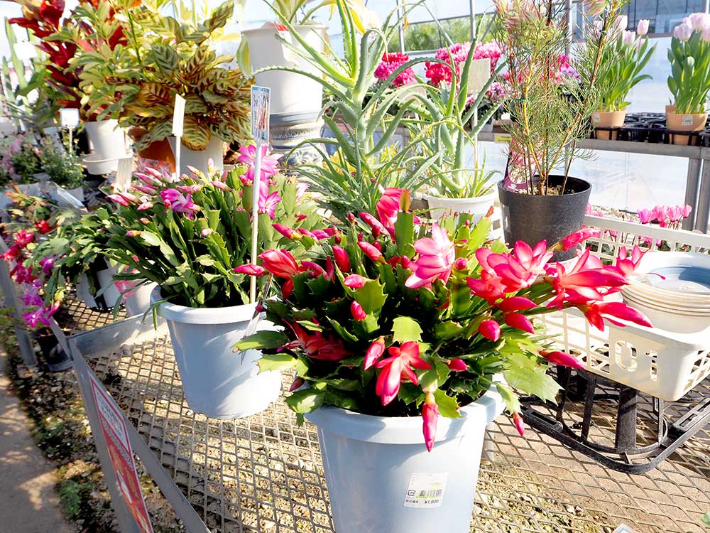 また、パイプハウス(ビニールハウス)では、色鮮やかなシャコバサボテンやシクラメンがお買い得価格で並んでいます。
