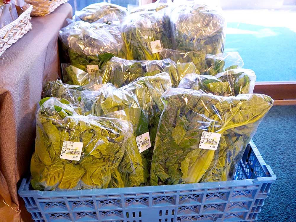 旬真っ盛り!のブロッコリーや、ホウレンソウもてんこ盛りなのですが、入口すぐのところにはお漬物用の大きな高菜がドーンと並びました!