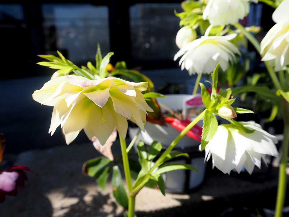 黄色い小花が愛らしいムルチコーレや、控えめな美しさがエレガントなクリスマスローズがズラリと並びました。