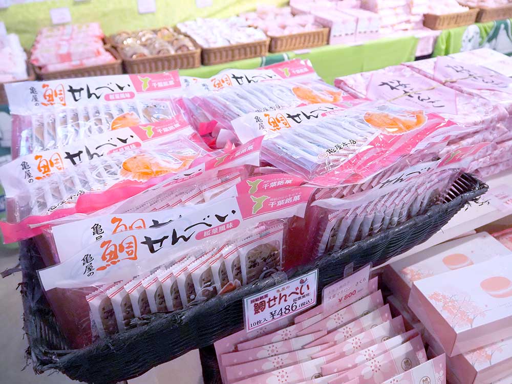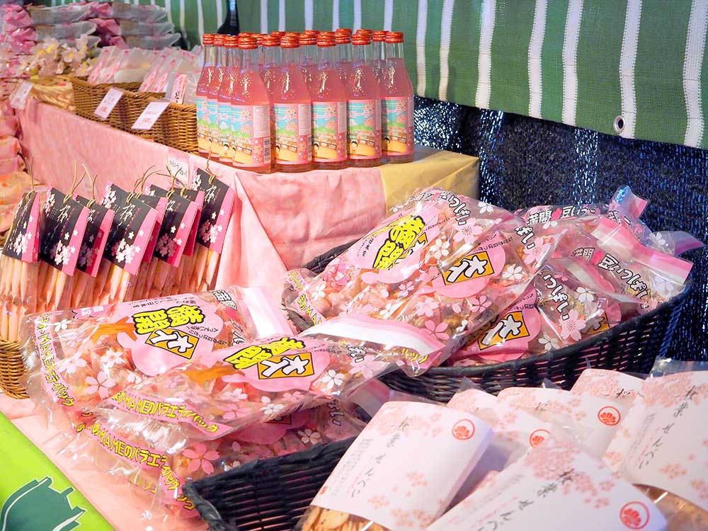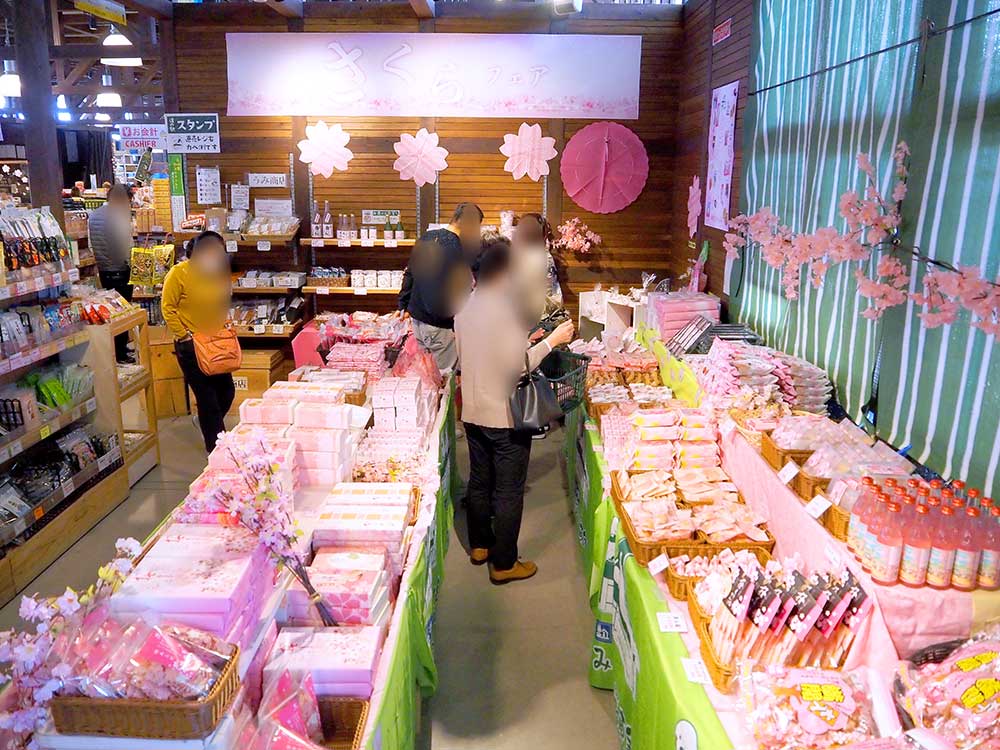 道の駅 みのりの郷 東金 東金マルシェでは、2024年の春のお彼岸の期間中、入口すぐの特設コーナーにて、さくらっぽい商品をズラリと揃えた「さくらフェア」を開催中です。