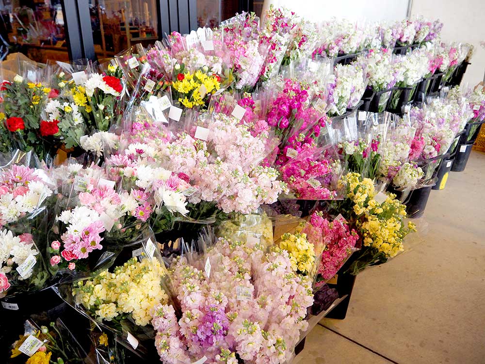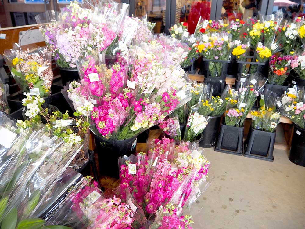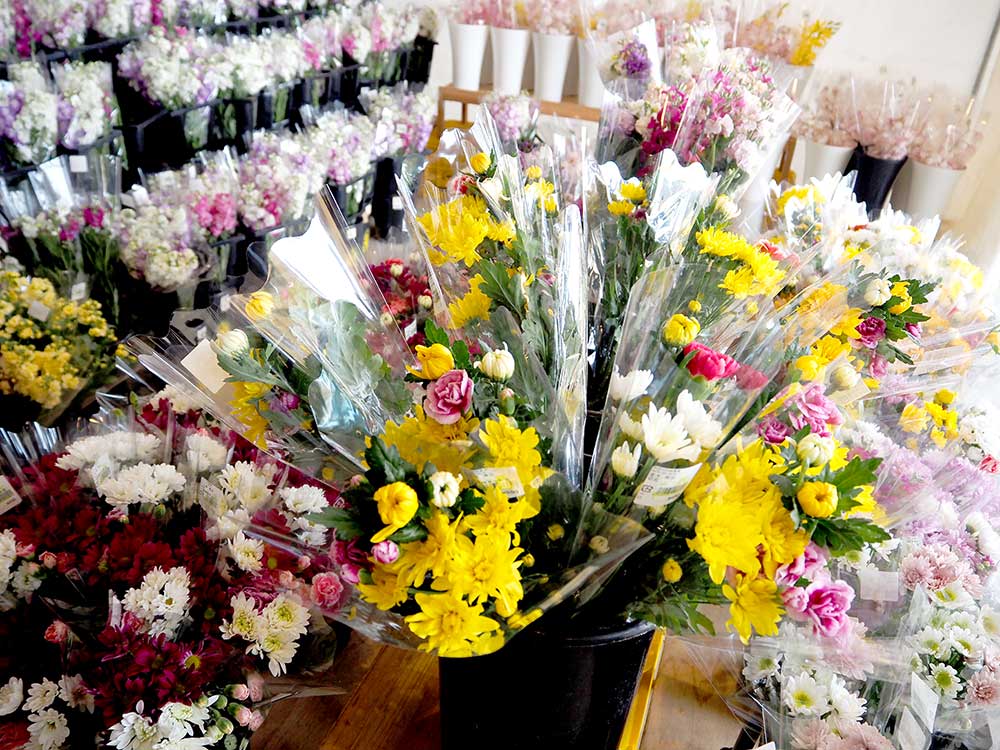 今回はお彼岸用の仏花はもとより、旬のストックやシンビジュームもズラリ!