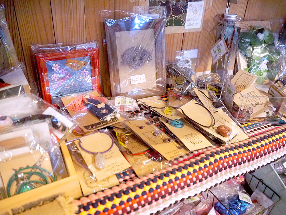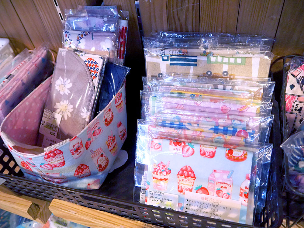 そのほか、人気の作家さん「るえら」さんの作品や、ハワイアン布小物、アクセサリー、紙紐バッグや手作りマスクなどいろいろあってみているだけでも楽しいものばかりで、お値段もお手頃です。