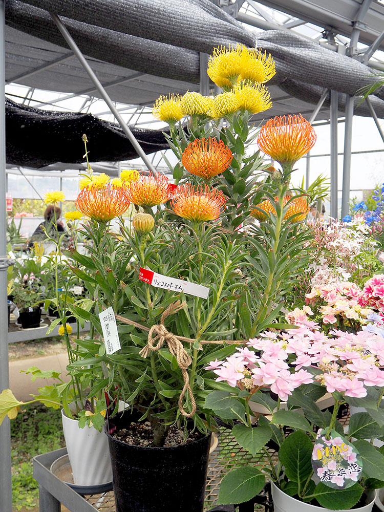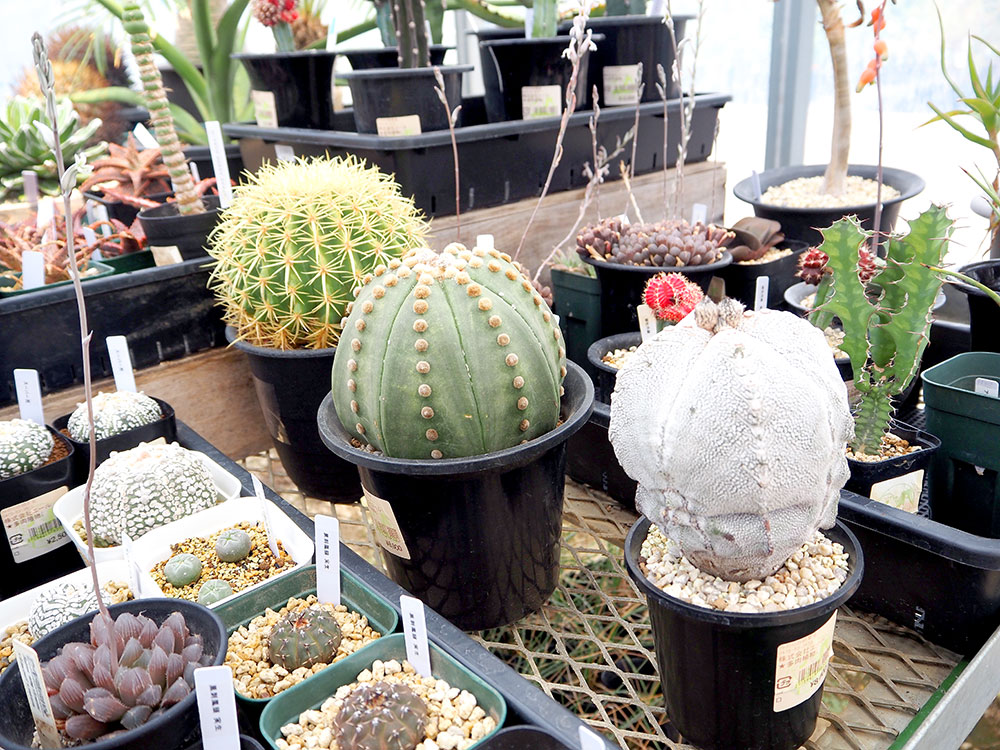 リューコスパーマムや大輪のアマリリス、コンディションのよいサボテン群がズラリ。