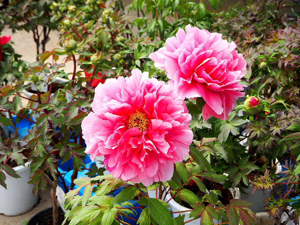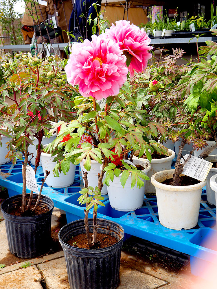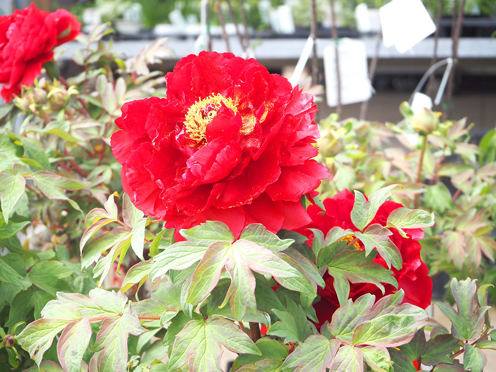 屋外では、これから季節を迎える牡丹(ピオニー)のコーナーで大輪の花を見ることができます。