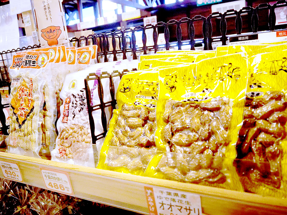 道の駅 みのりの郷東金 東金マルシェには、千葉県産の様々な落花生が並んでおります。
