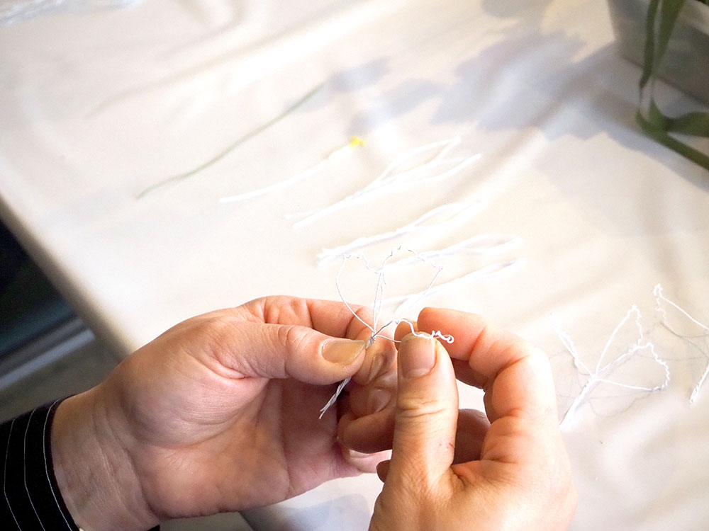 ワイヤーを整形して、花びらを作っていきます。手取り足取り教えてくれていますね。