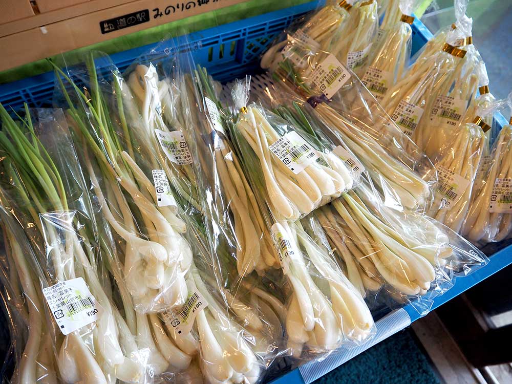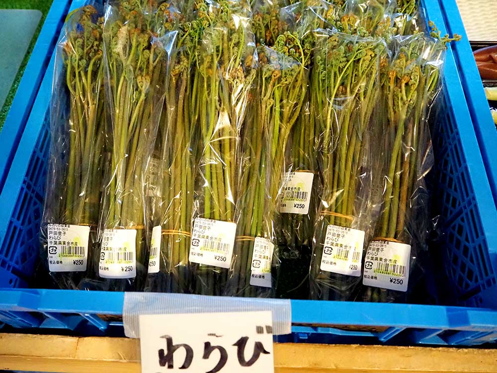 まだ少しワラビも並んでいます。生産者さんが「朝採ってきたよ~」とニコニコしながら並べてくれました。
