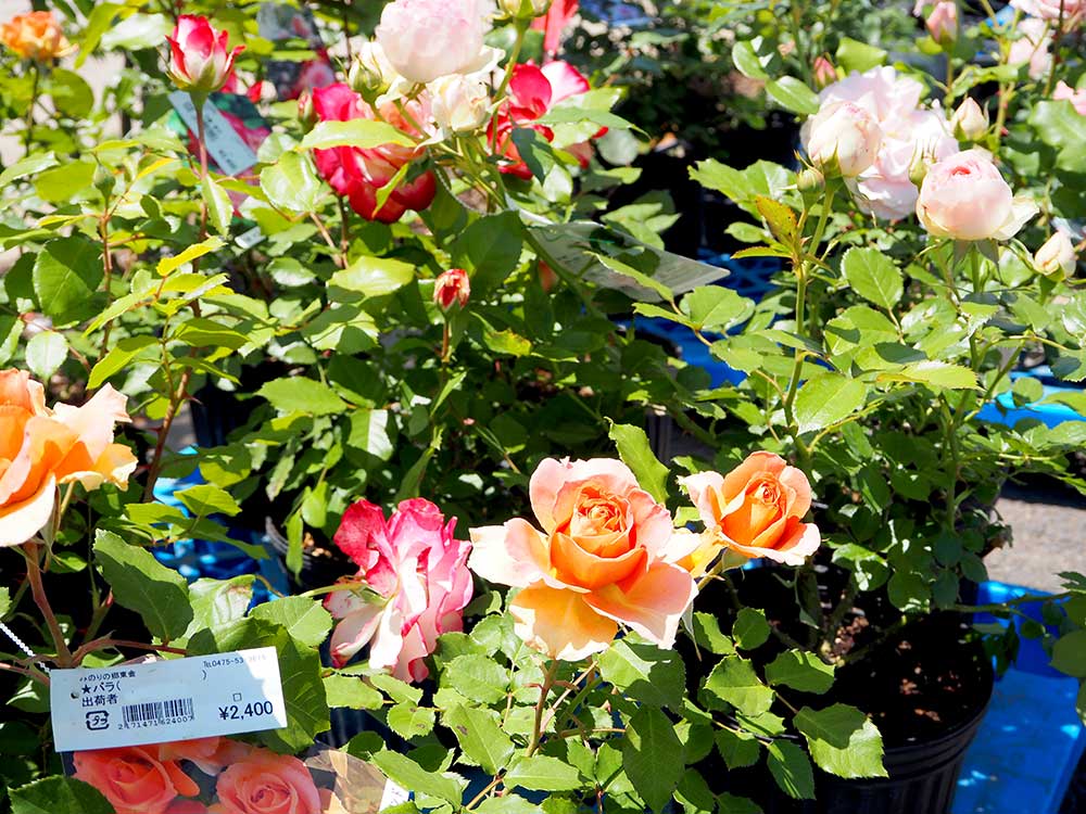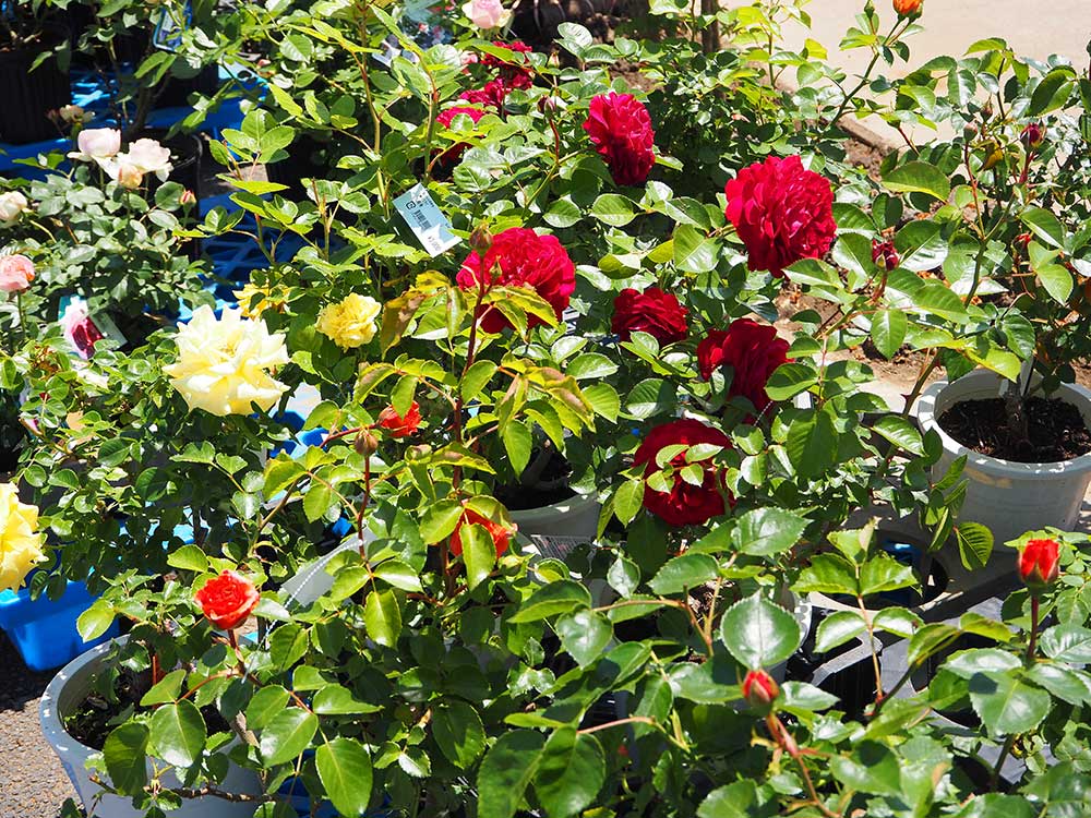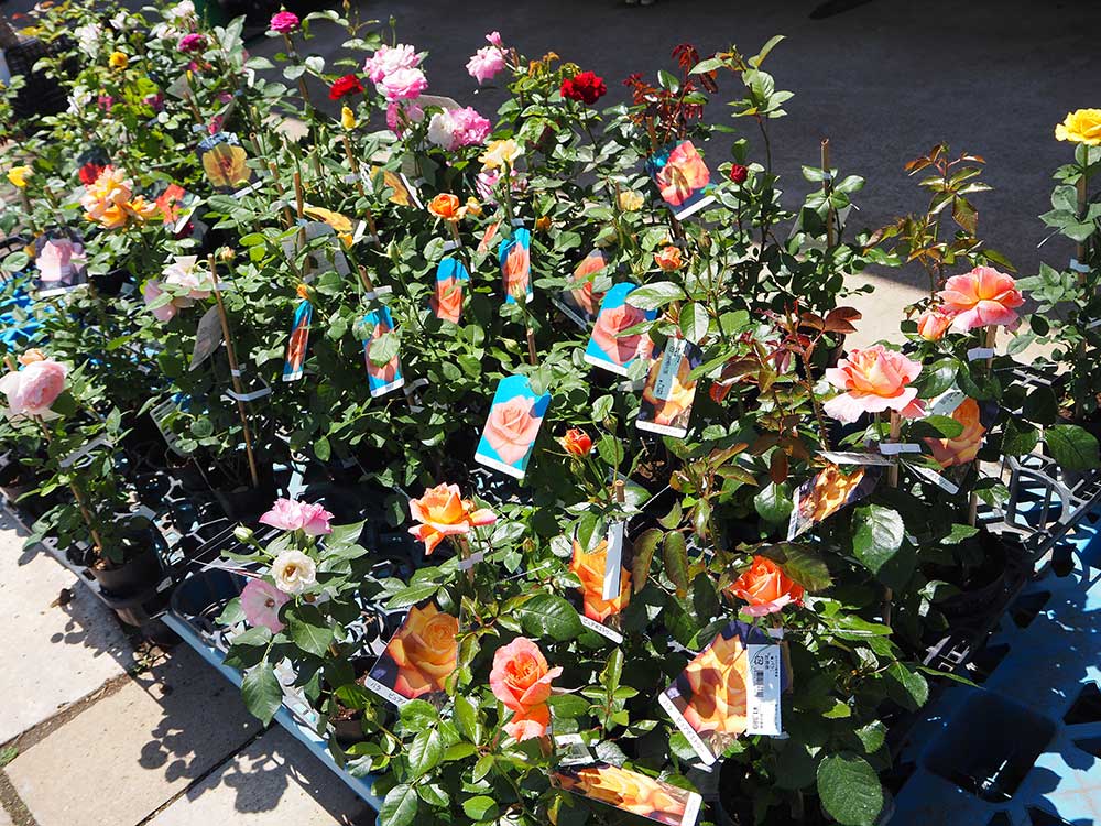 また、緑花木市場の野外コーナーにもバラがズラリと並んでいます。