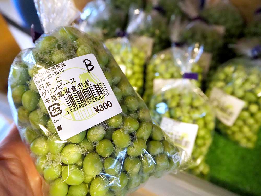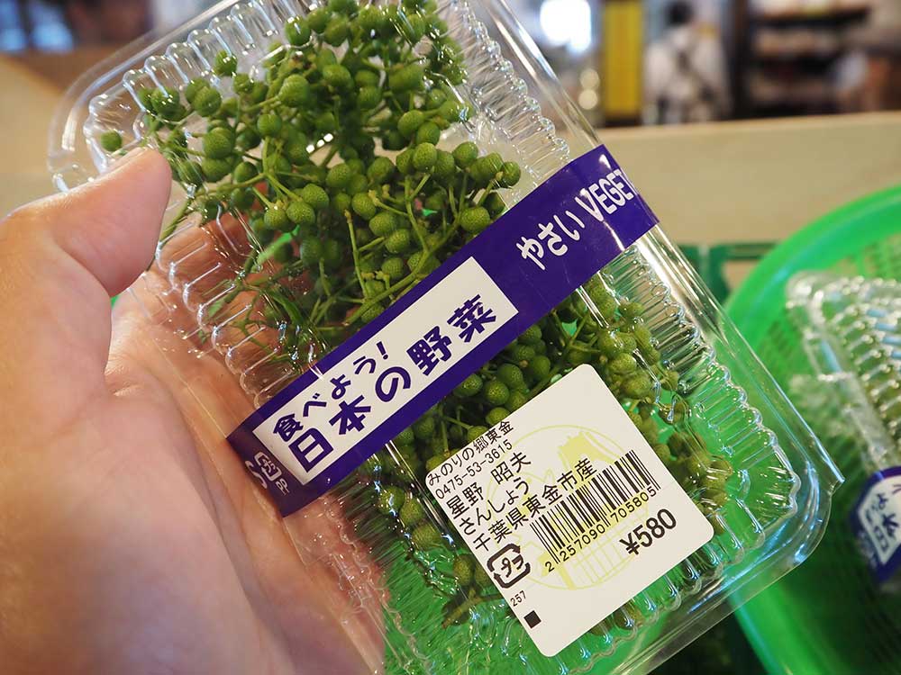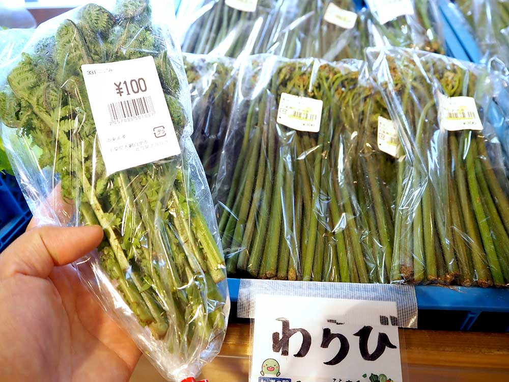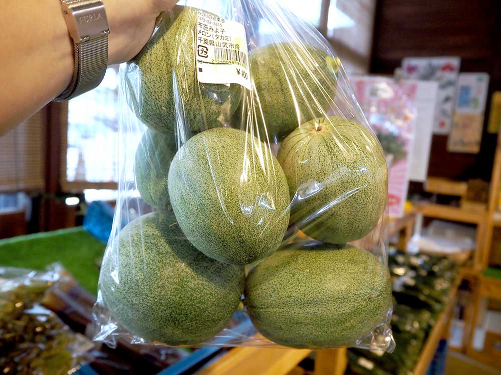 また、グリンピースや山椒の実が少々、もう終わりかと思っていたらワラビやこごみも並びました!漬物用の摘果メロンも少し並んでいます。