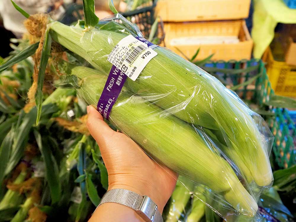 「トウモロコシはこれぐらいの大きさのが甘くておいしいんだ~」とお客様が教えてくれましたよ。