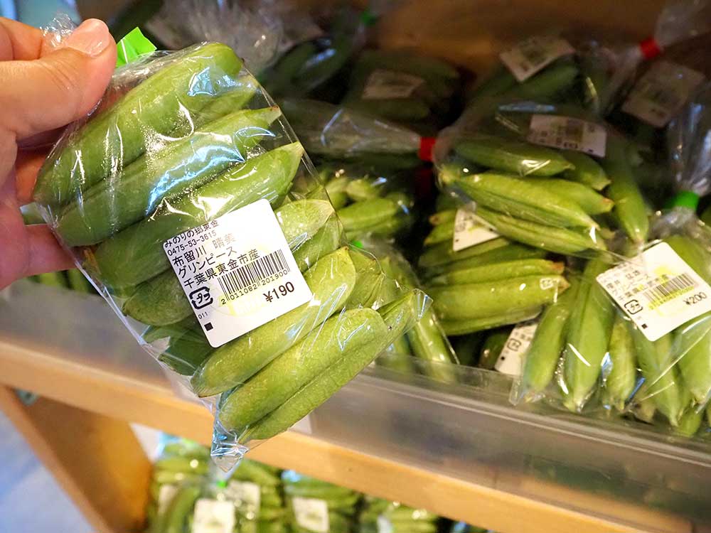 そのほか、今年は例年になくグリンピースがたくさん入荷しています。本当に新鮮なので、鞘入りのまま店頭に並んでいます。