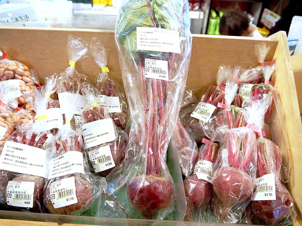 そのほか、東金産のブルーベリーが出始めたり、地元産ズッキーニがどんどん並んでいたり、コールラビや「食べる輸血」ともいわれるミネラル豊富なビーツも並んでいます。