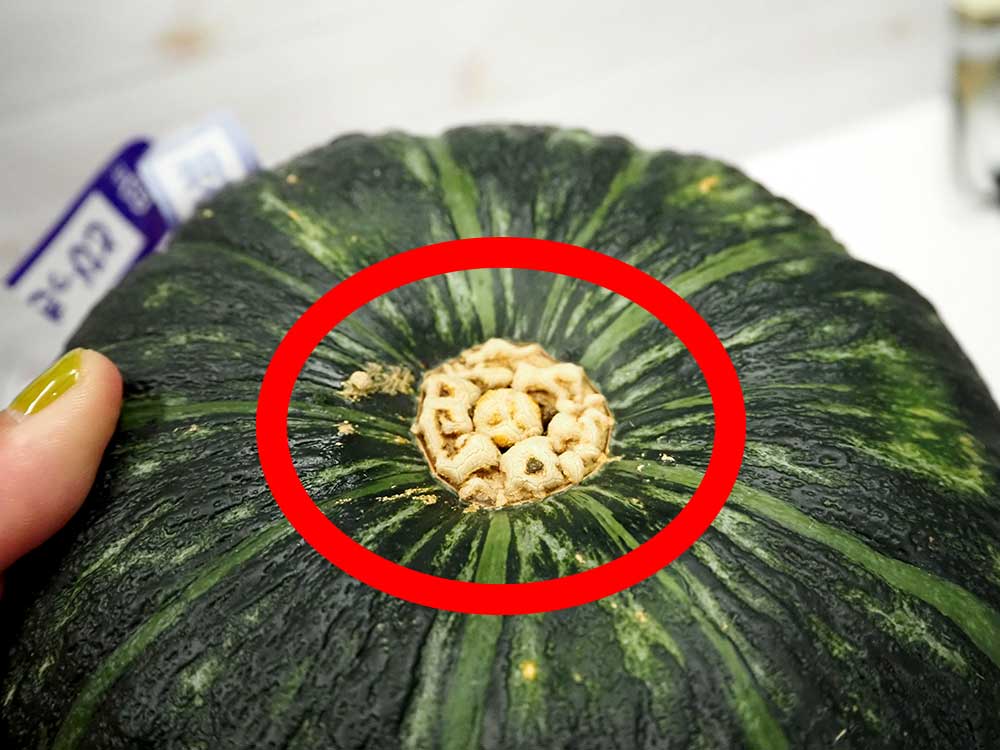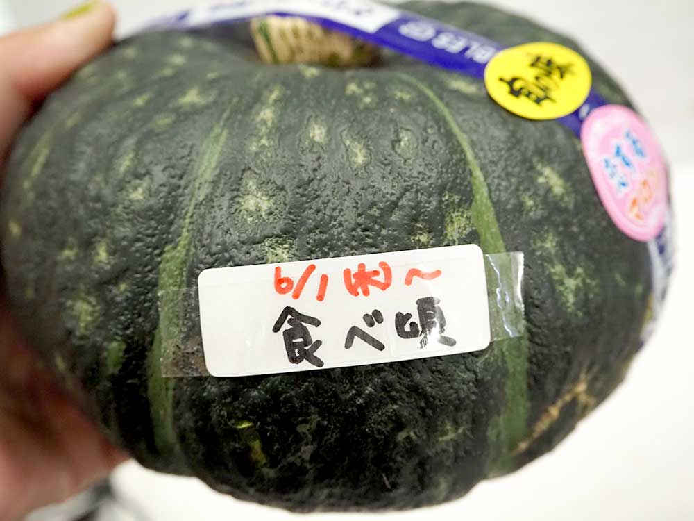 かぼちゃは熟成して糖度が増してから店頭に並びますので、食べごろシールが貼られています。嬉しいですね!