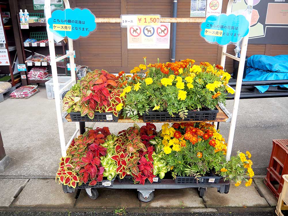 緑花木市場レジ前には、サツマイモの苗(紅あずま)や害虫駆除スプレーなどものございますのでどうぞご利用ください。