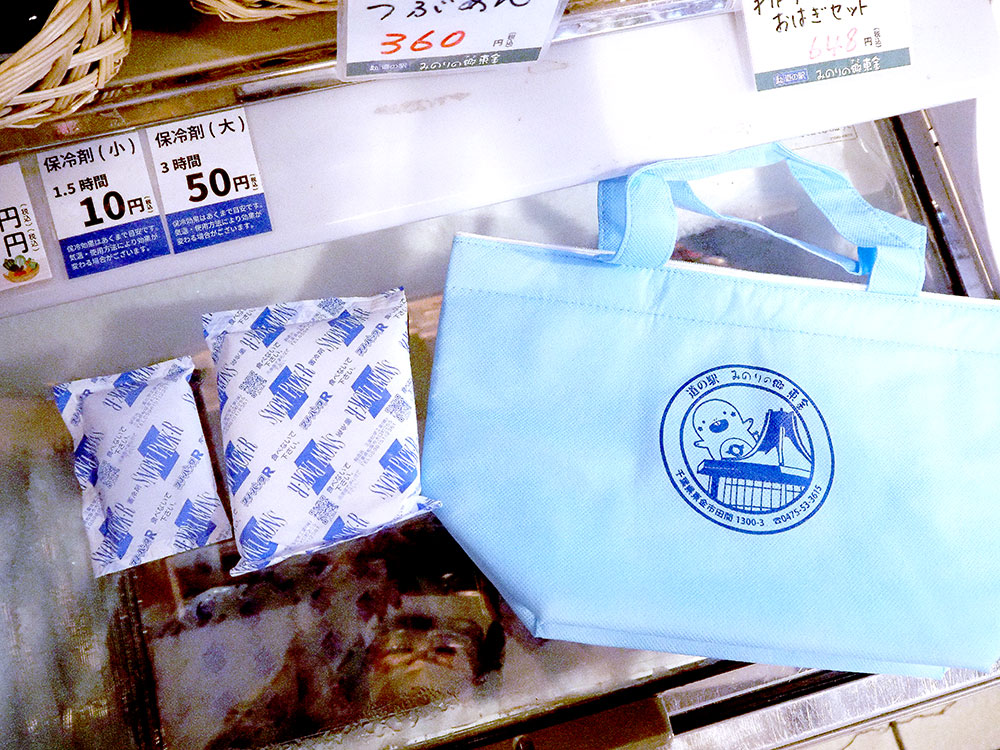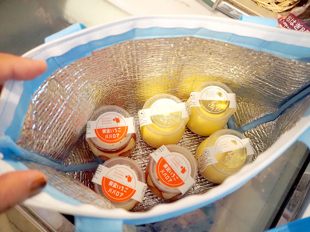 「みのりとろ~りプリン」なら6個並びます。そのほか、冷凍蟹や冷凍セグロイワシのごま漬けなども持ち運びやお使い物に安心です。