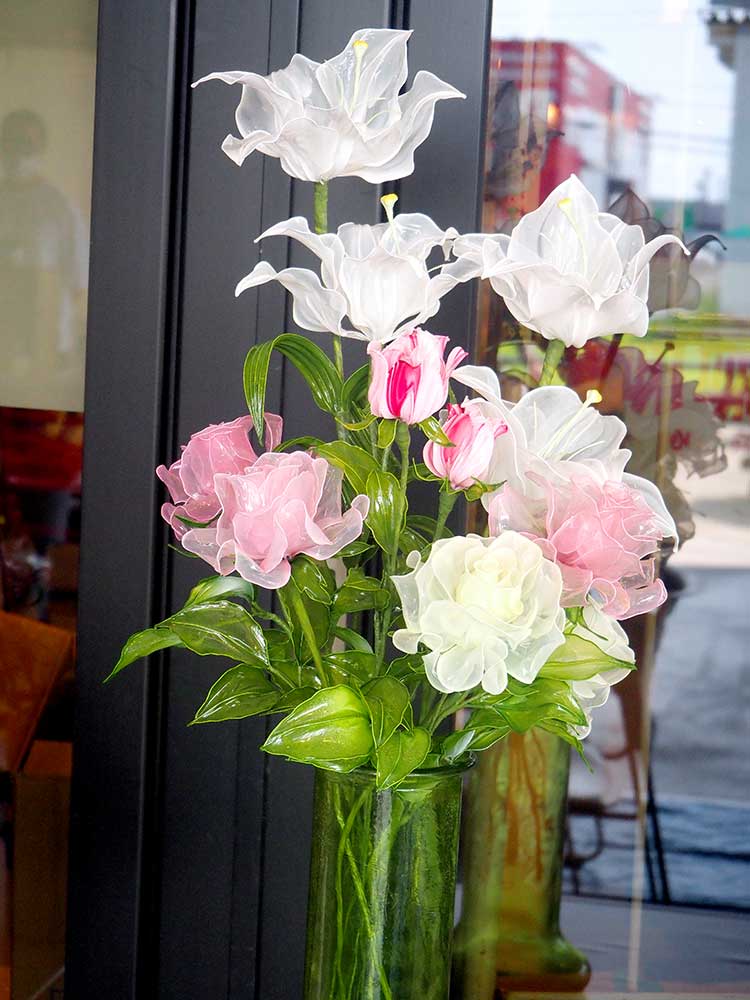 同じように作っていても、花びらや葉っぱの形、色合いがお一人お一人の個性の違いが出て、作る楽しさ、出来上がりを見る楽しさを存分に味わえる体験イベントでした。