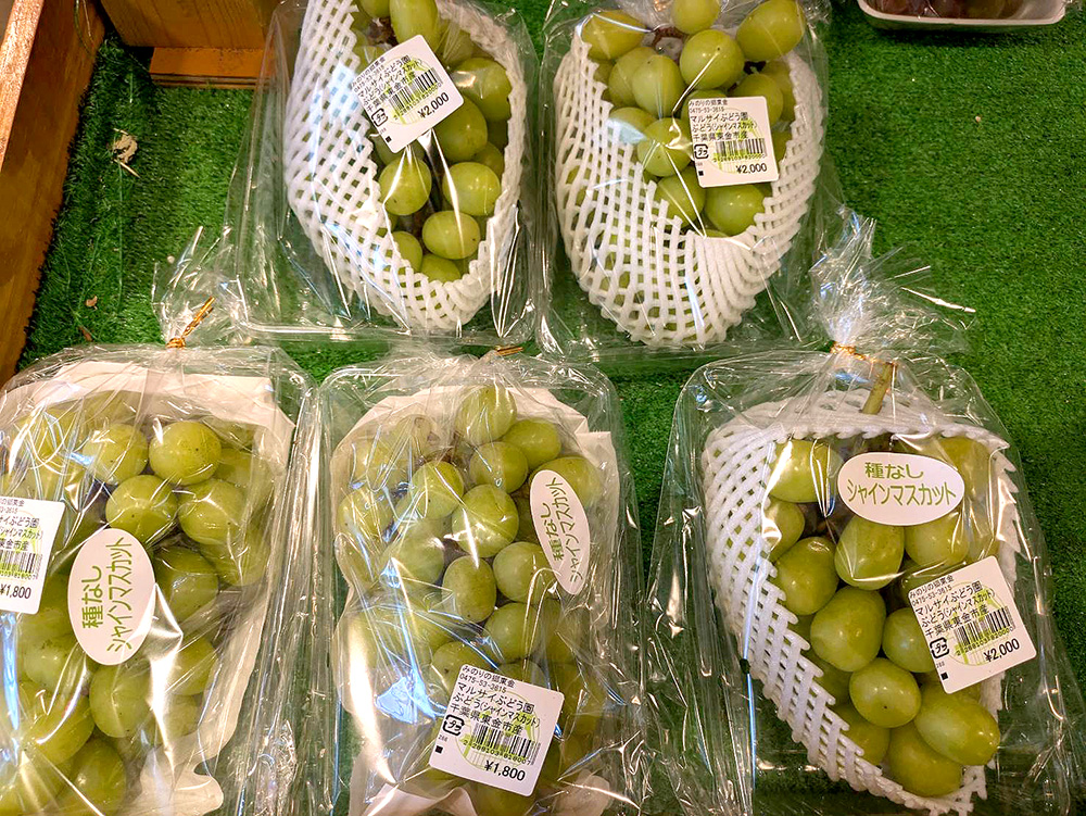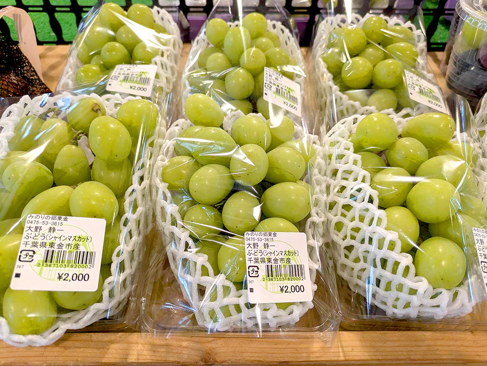 道の駅 みのりの郷東金 東金マルシェでは、東金ぶどう郷から直送の旬のぶどうがズラリ!