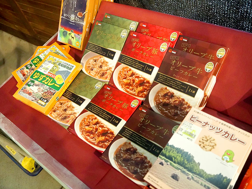 根強い人気のbayfm it!!千葉のご当地調味料シリーズ「マッシュルームイチバン」「ネギイチバン」や、千葉といえばイワシを使った甘露煮や「シダのいわし角煮」、千葉県内の4つのJA農産物直売所と東金市にある上原食品工業さんが「千産千消」をコンセプトに共同開発した「情熱カレー」など、新米をさらにおいしくするアイテムをずらりと並べています。