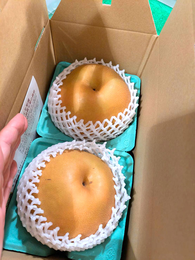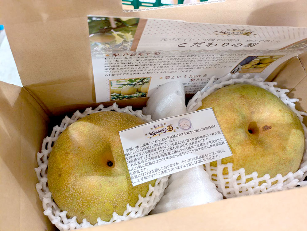 梨は「あきづき」がメインになってきました!また、ご贈答用の素敵な箱入りはに「元パティシエで現梨マイスター」として有名な梨工房 城山みのり園さんの梨です。