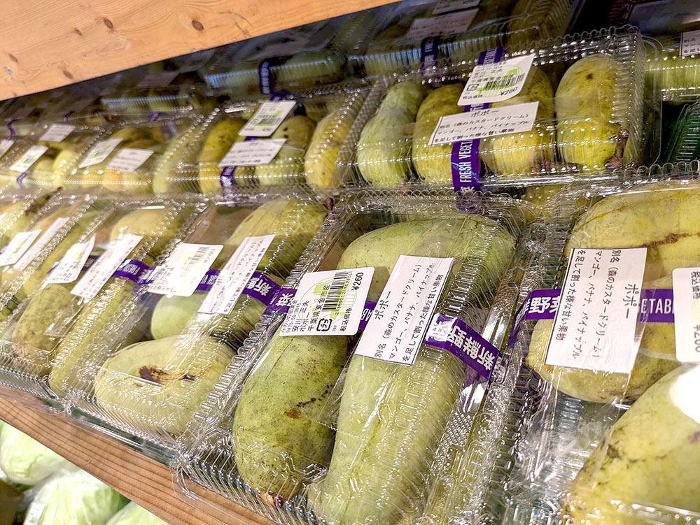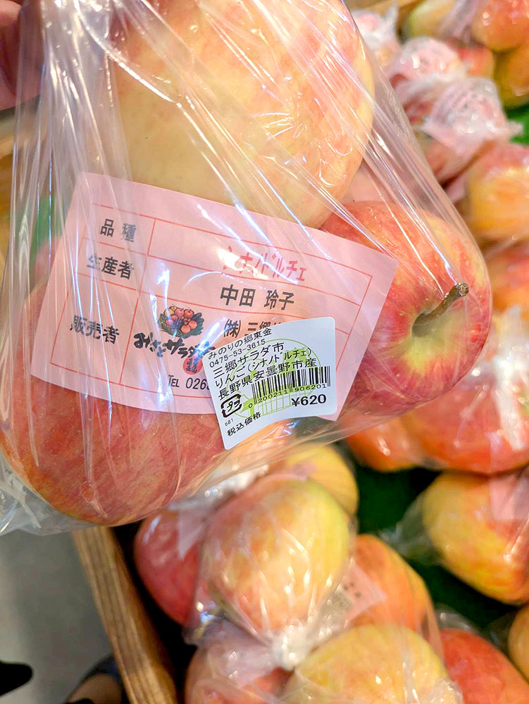本日のおすすめ果実です。ラストスパートのいちじくや、ポポー。東金市の友好都市である長野県安曇野市から産地直送!で届いたりんご。ただいま並んでいるのは「シナノドルチェ」です。