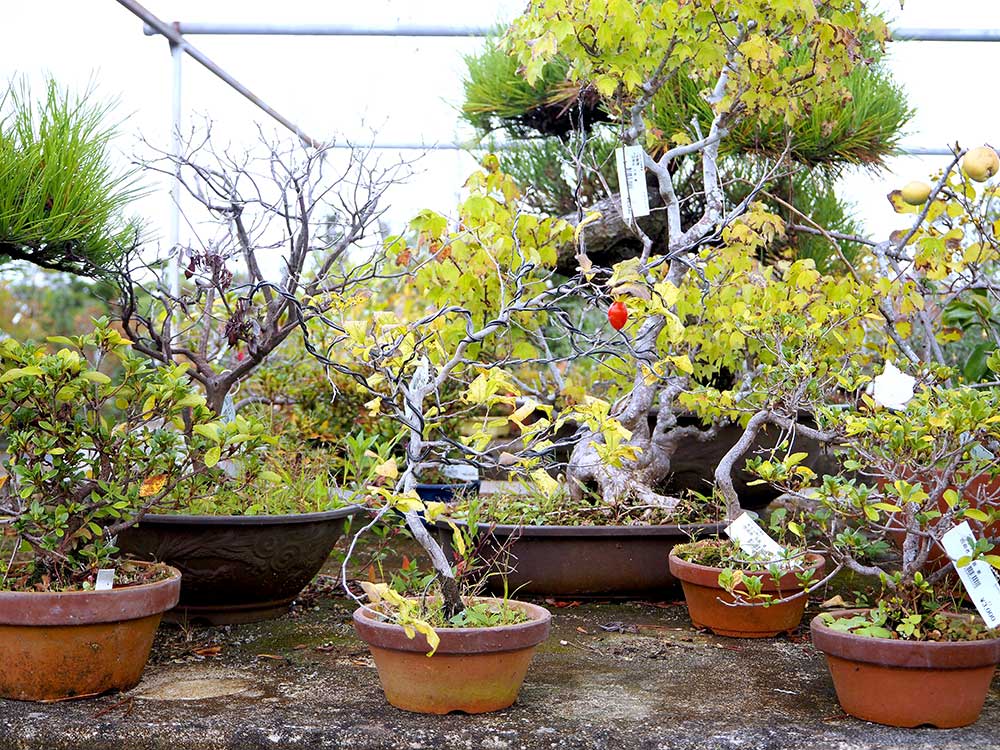 秋らしい、実の生る盆栽がちらほら並び始めています。