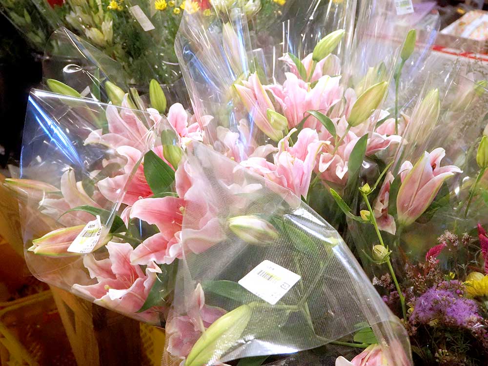 本日は切り花のコンディションがよく、トルコ桔梗がお手頃価格ですよ。仏花もございます。
