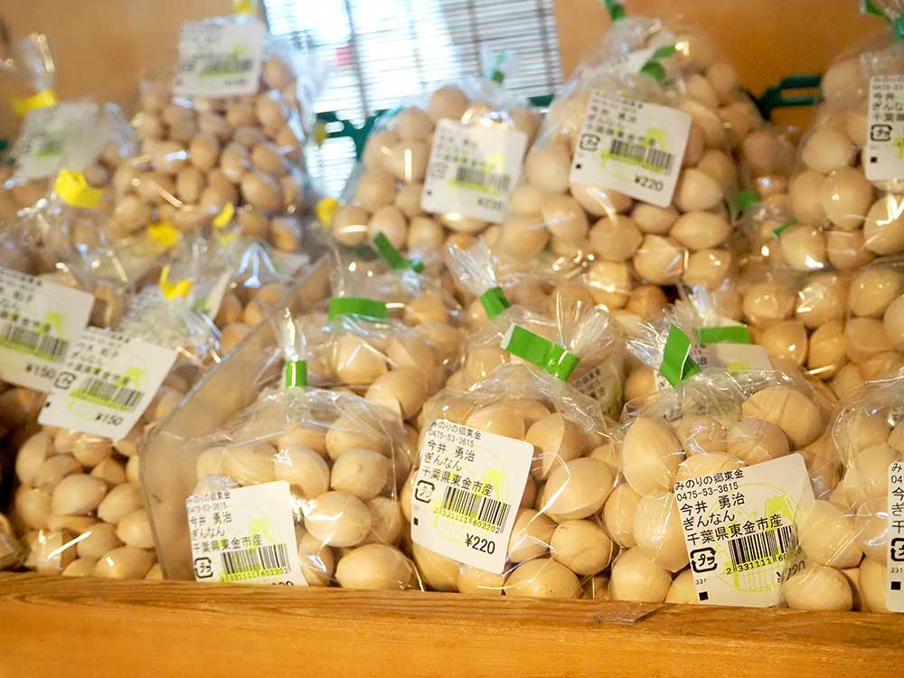 や入口付近には生落花生の剥き身「Qなっつ」や菊芋、銀杏が並び始めました。
