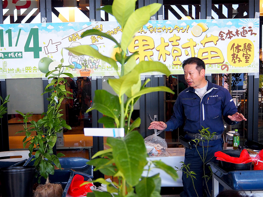 本日の体験イベントは『植えてみよう!育ててみよう!「果樹苗を植えてみよう!体験教室」』でございます。