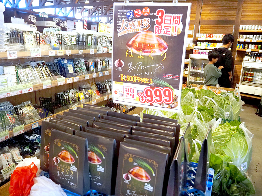本日まで!道の駅 みのりの郷東金オリジナルの人気商品「九十九里はまぐり黒アヒージョ」1箱を定価1,500円(税込)のところ、なんど!道の駅9周年を記念いたしましての特別価格、