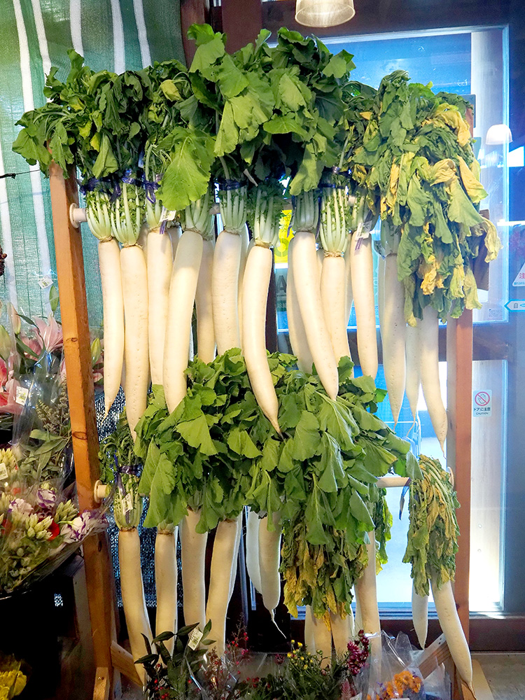 また、入口付近にはお問い合わせの多い「沢庵大根」がブラブラしています。