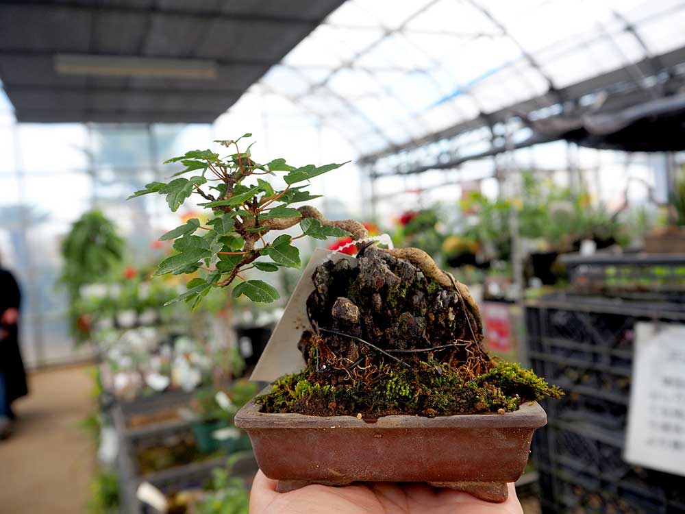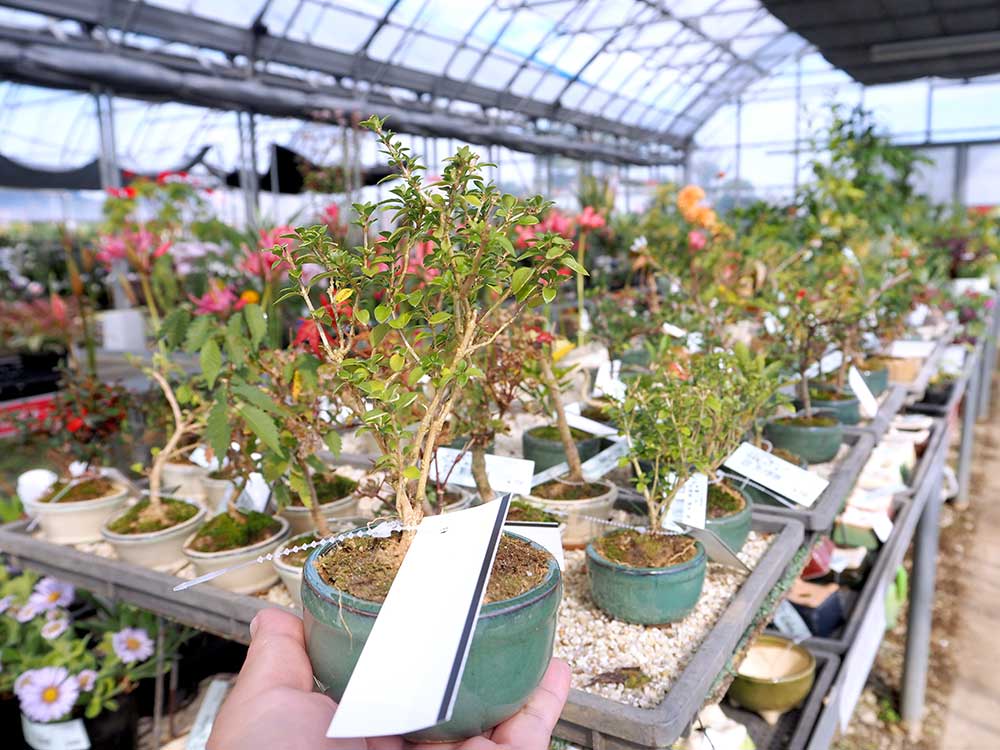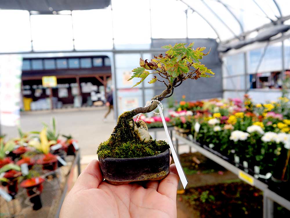 パイプハウスは入ってすぐミニ盆栽があります。手乗りです。