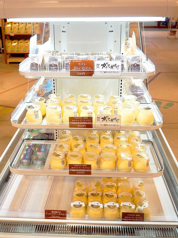 みのりとろ~りプリンはこのように置かれるようになりました。ほか、お問い合わせの多い「 蕎麦甘(そばかん)」も入荷したらこちらの冷蔵スイーツコーナーに並びます。