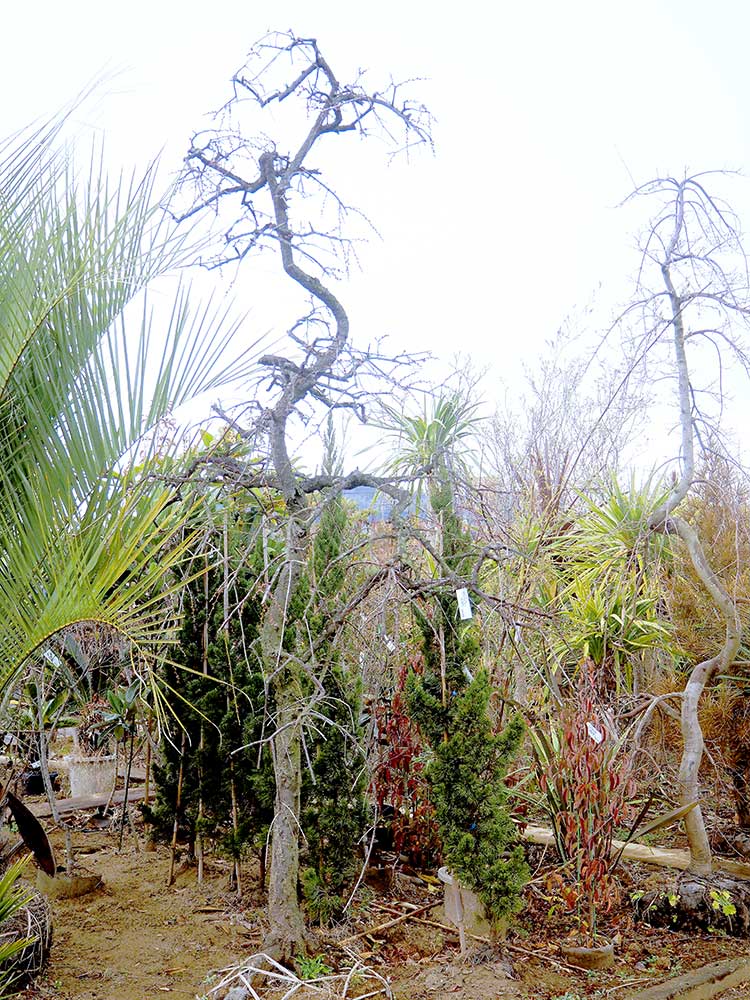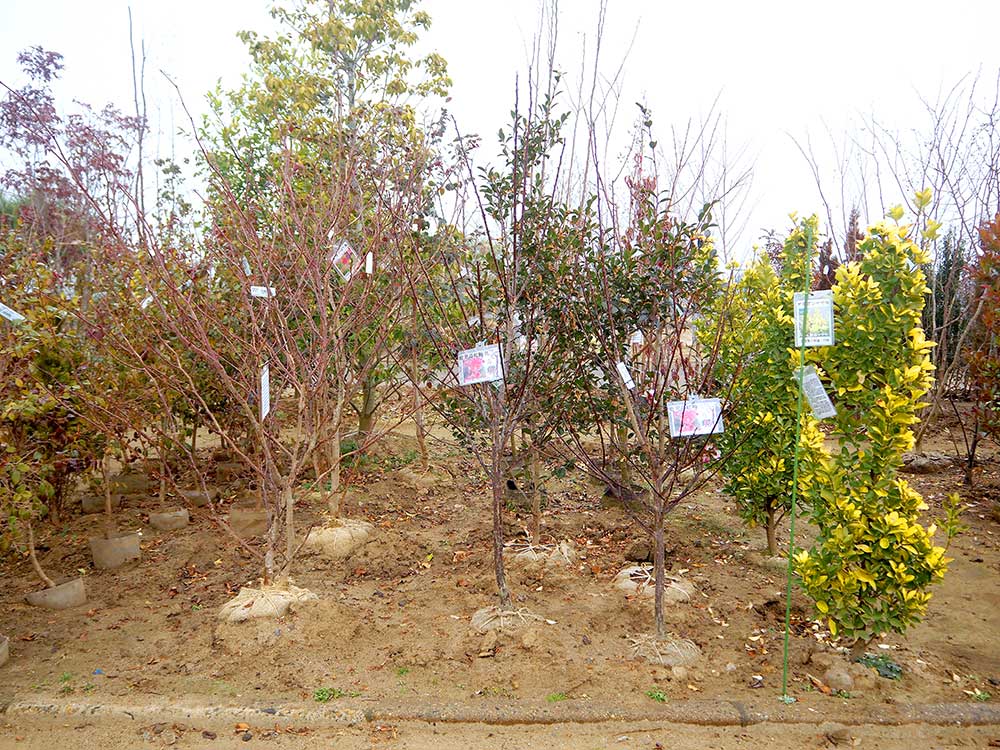 しだれ梅、鹿児島紅梅の大苗が並び始め、硬い蕾をつけているところです。