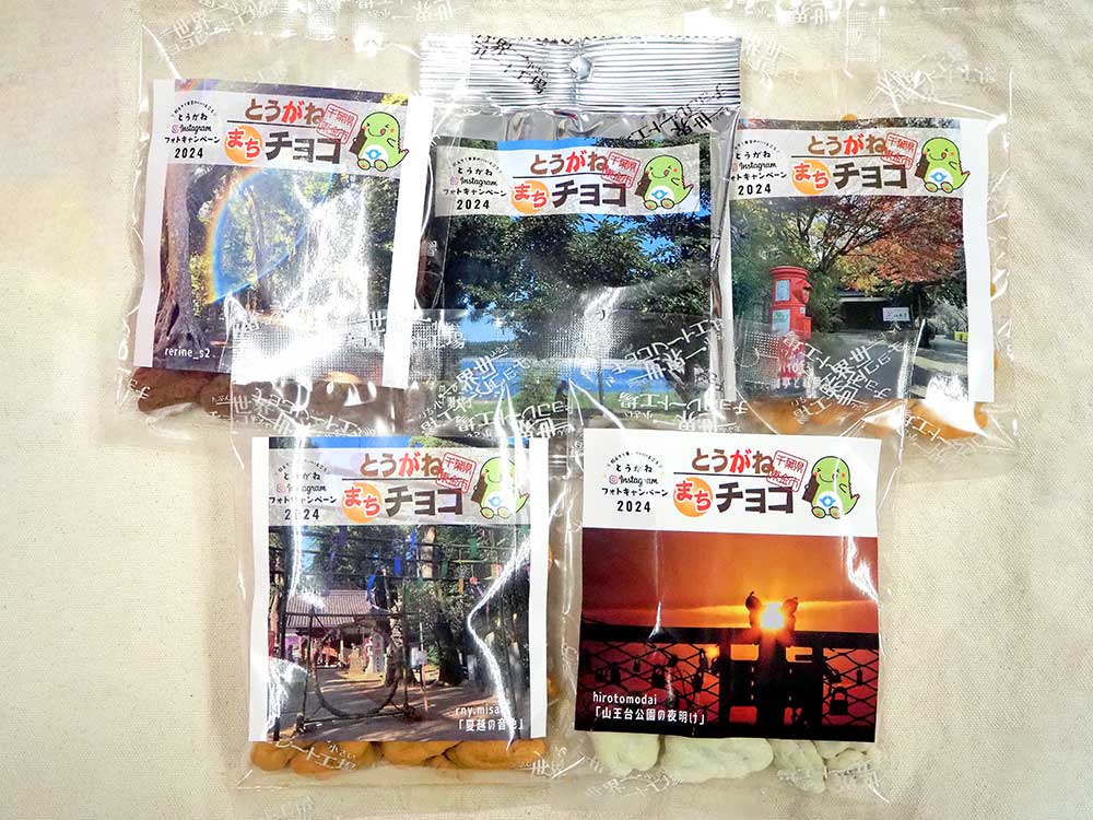 千葉県東金市の魅力を表現した写真作品などをパッケージにした『とうがねまちチョコ』 1袋 350円(税込)です!