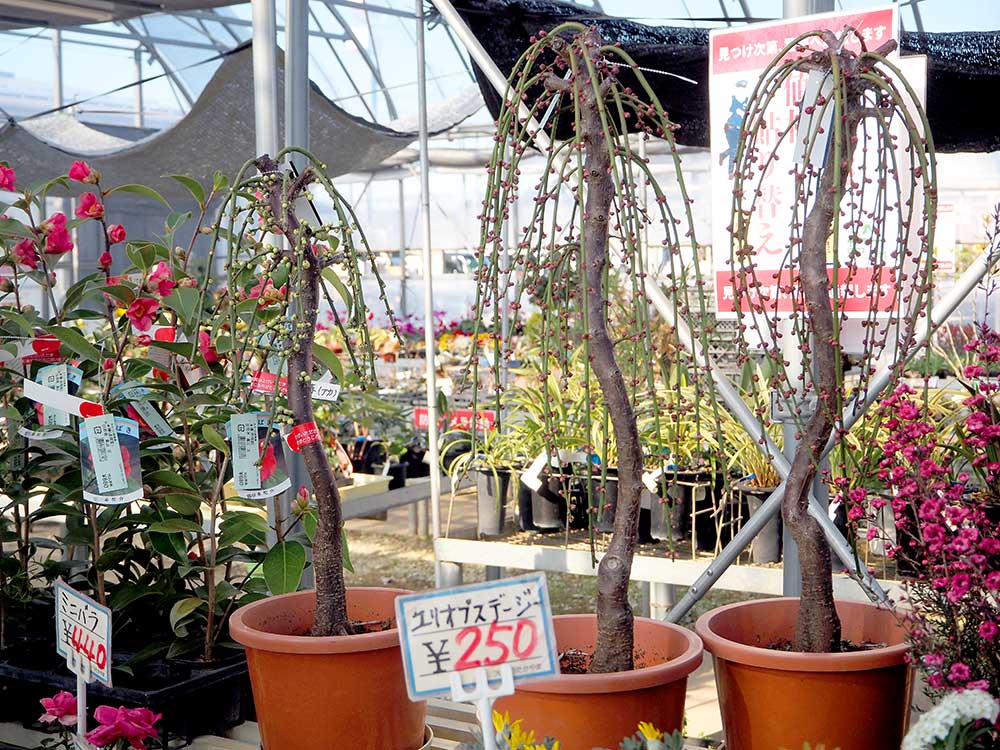 これから満開を迎える、コンディションの良いしだれ梅もこちらにございますよ。