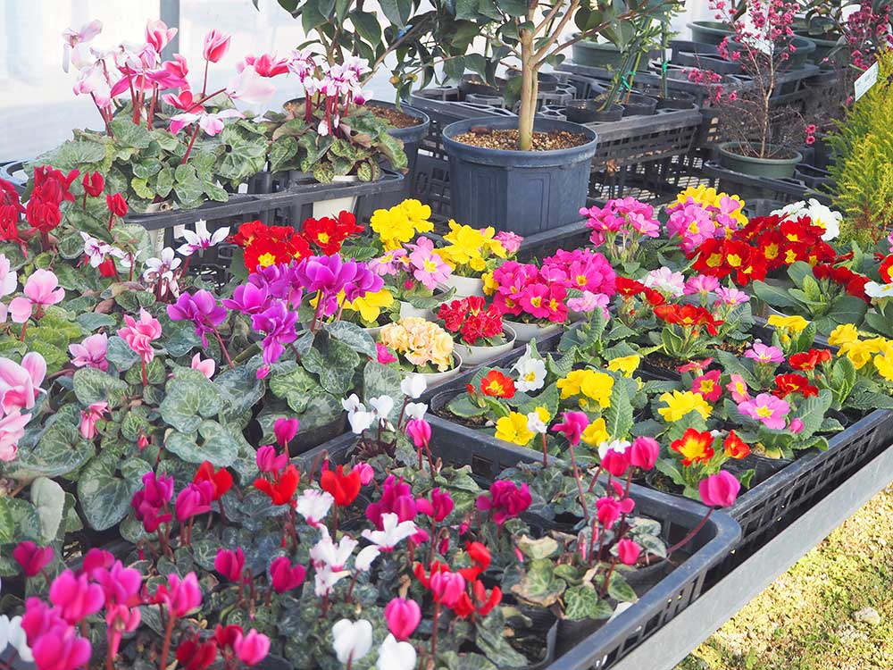道の駅 みのりの郷 東金 緑花木市場では、パイプハウスが色とりどりの花が並び春めいてまいりました。