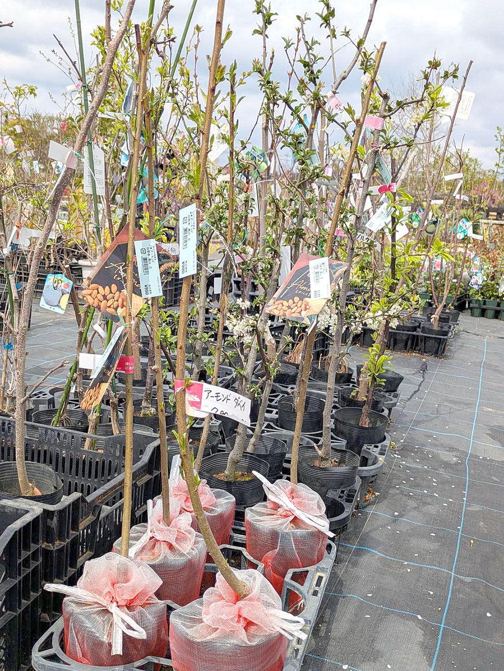 そのほか、お問い合わせの多いレモンの苗木のほか、アーモンドの苗木も並んでいます。果樹苗いろいろございます。