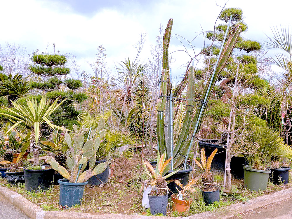 庭木にピッタリな良い形の松やサボテンの大苗もズラリと圃場に並んでいますよ。