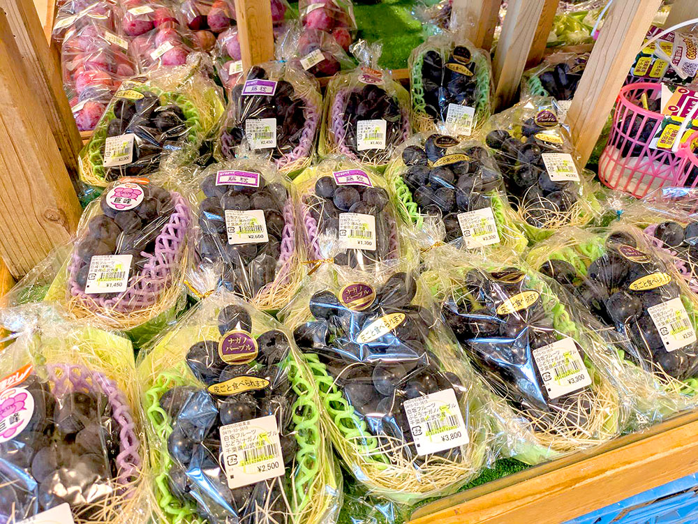 ほか、人気のシャインマスカットや高級品種の「ナガノパープル」も並んでいます。ご贈答用にピッタリ!