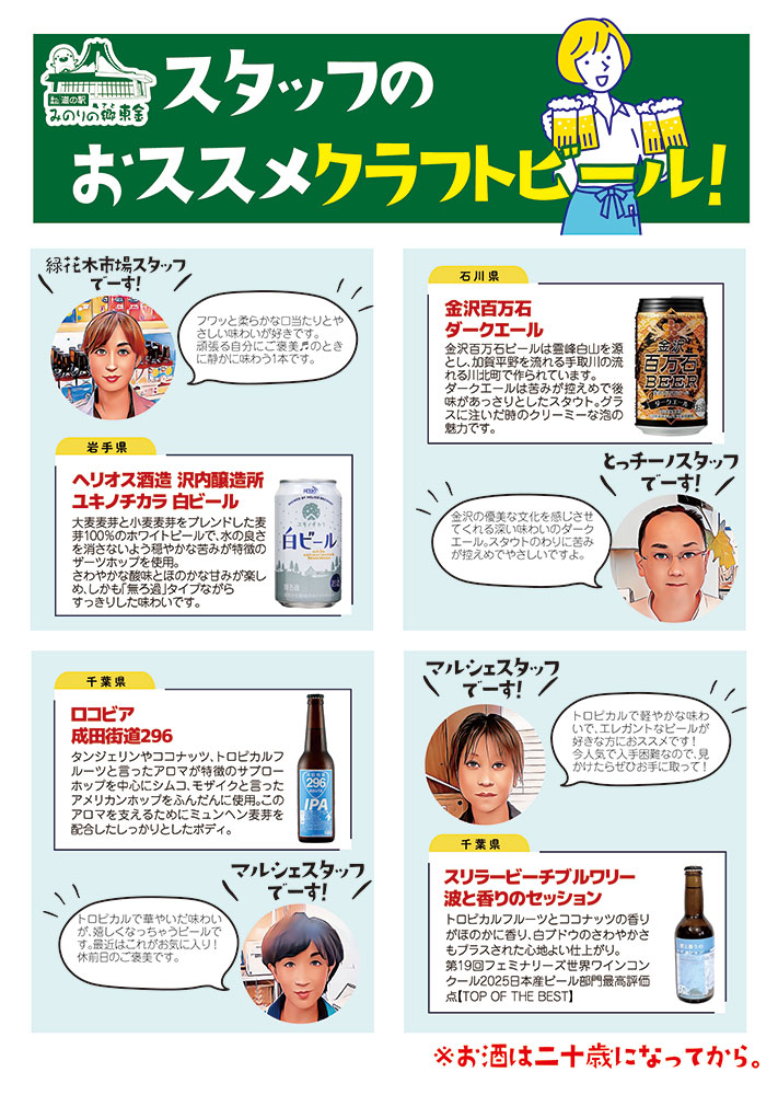 道の駅 みのりの郷 東金では、東金マルシェにて「ニッポン津々浦々 ご当地ビール&ポテチフェア」を8/17(日)まで開催中!です。