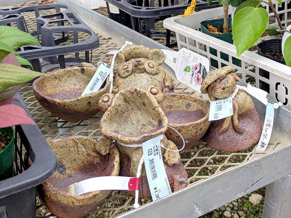 手作り感のある飾り鉢は、存在感があって魅力的です。
